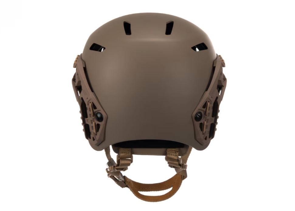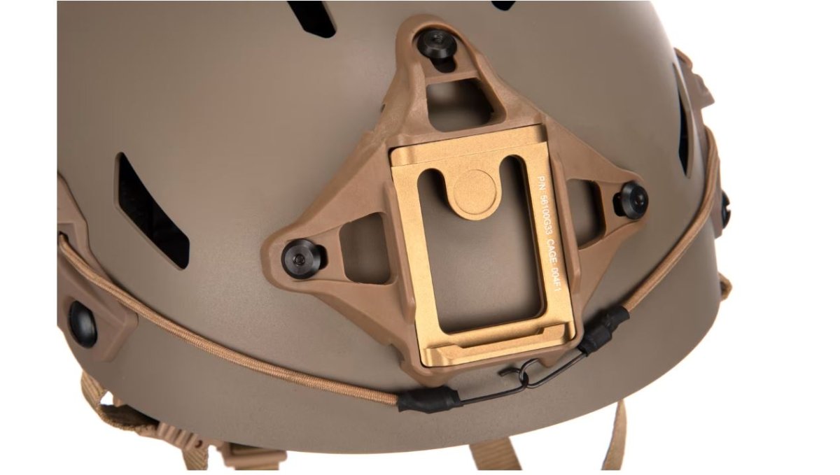 På båda sidorna av hjälmen finns rails för montering av lampor eller andra tillbehör. I pannan finns möjligheter att montera mörkerkikare.