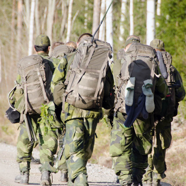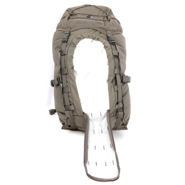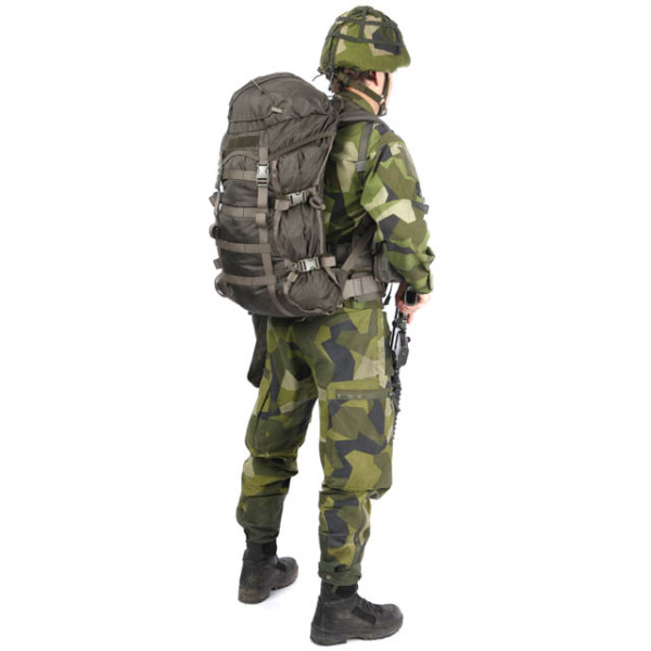 - Fyra MOLLEband på baksidan av ryggsäcken, där fickor kan fästas.