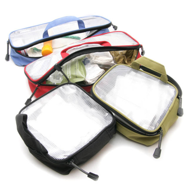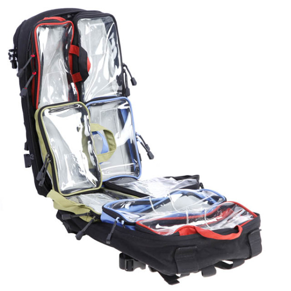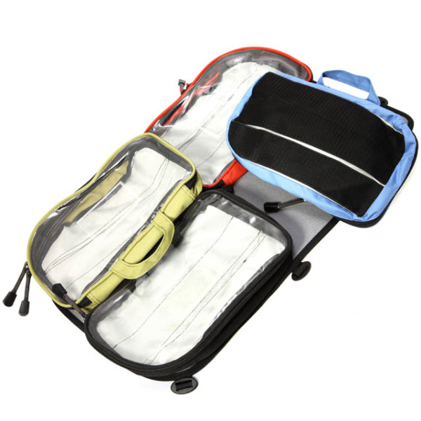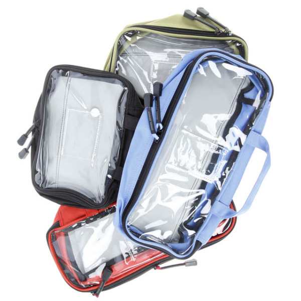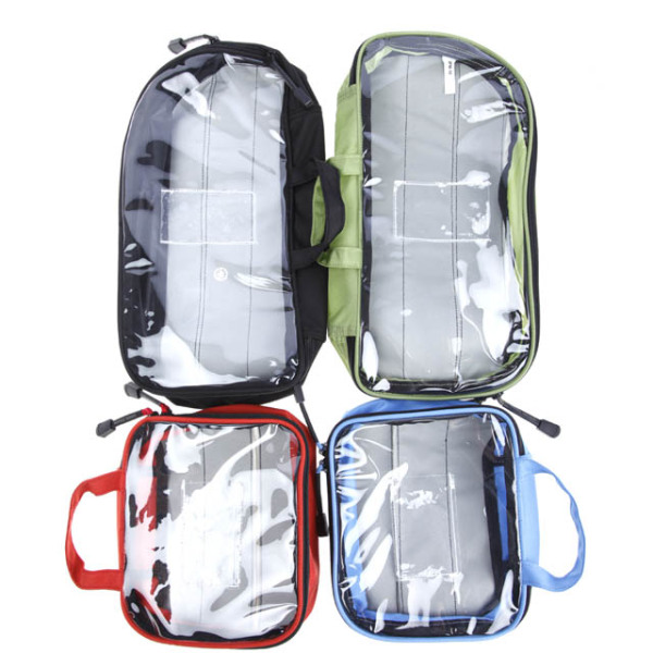4 färgkodade fickor som håller ordning på sjukvårdsmateriel eller teknisk utrustning
