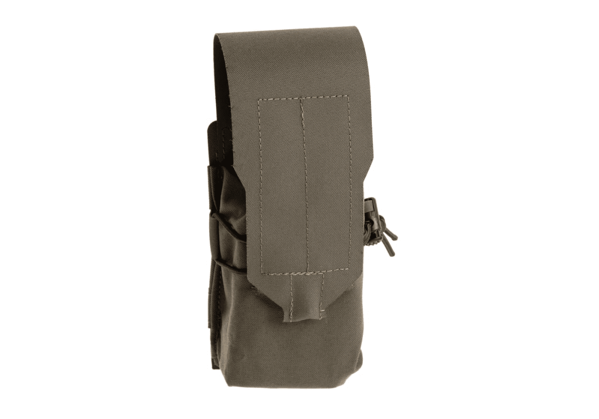 ULTRAcomp™ högpresterande laminerad baksida sträcker sig neråt, täcker botten och går över framsidan för ökad slitstyrka och viktbesparing. Resten av fickan är tillverkad i 500d CORDURA®-tyg. Fickan kan hålla ett eller två M4-magasin (polymer eller metall), som säkras och hålls tysta av ett elastiskt band runt fickans utsida.