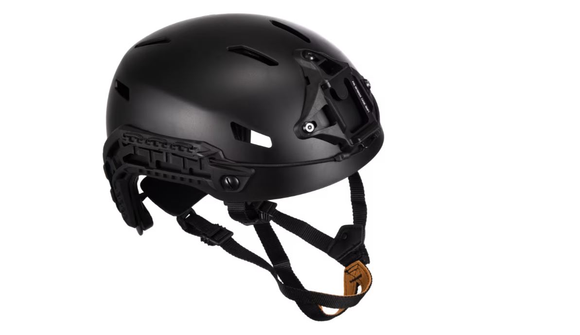 På båda sidorna av hjälmen finns rails för montering av lampor eller andra tillbehör. I pannan finns möjligheter att montera mörkerkikare.