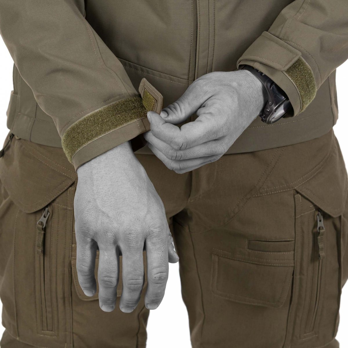 UF PRO designade denna jacka med dina behov i åtanke. För att komma åt ditt sidovapen, öppna jackans tryckknapp vid höften, dra upp dragkedjan i nederkanten och använd dragsnöret för att fästa jackan vid ditt hölster. Ditt vapen kommer då att vara inom räckhåll hela tiden medan du fortfarande är skyddad från vädrets makter.