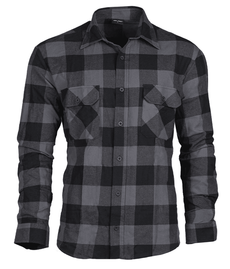 Flanellskjortan har två bröstfickor som är försedda med flärp som stängs med knappar.