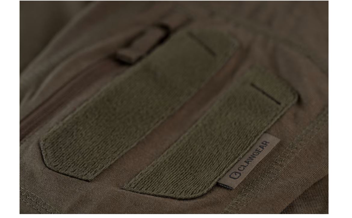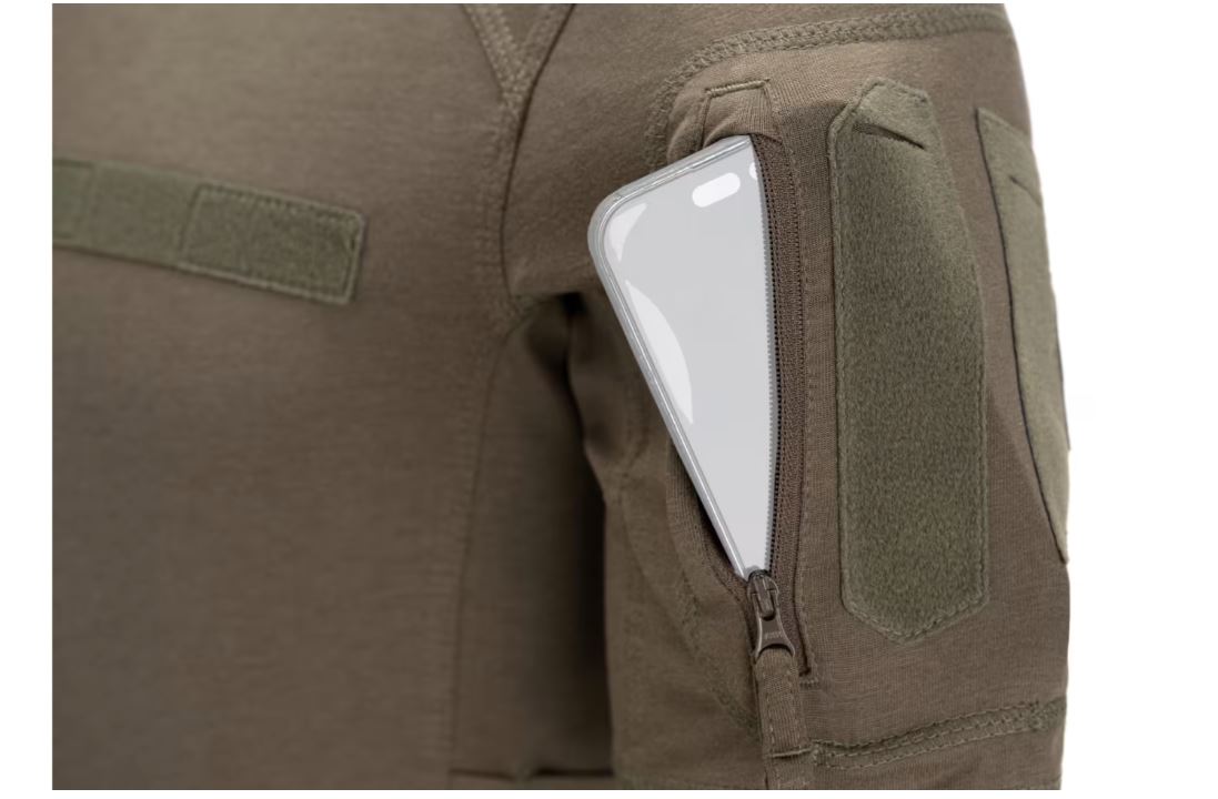 Designen inkluderar två övre ärmfickor med dragkedja och stora kardborreyta för märkning, samt två praktiska smartphonefickor i sidopanelerna. En kardborrepanel på vänster bröst ger möjlighet att fästa namn- eller gradbeteckningar. Den sömlösa konstruktionen i armhålorna och raglanärmarna bidrar till en bekväm passform med god rörelsefrihet – perfekt för dynamiska situationer.