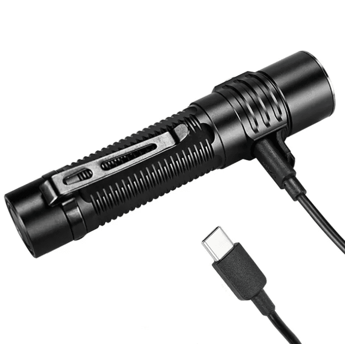 Ficklampan drivs av ett uppladdningsbart 21700 batteri på hela 5000mAh som laddas upp genom en usb-c kontakt på ficklampan, den kan även drivas med 18650 och CR123A batterier.