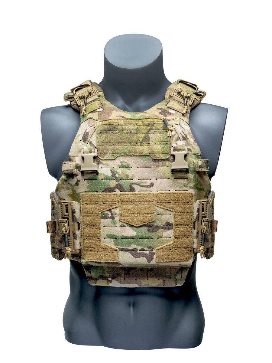 Plattbäraren är sydd i IRR-behandlad 500D Cordura laminat med COOLMAX-fodrade komfortkuddar.