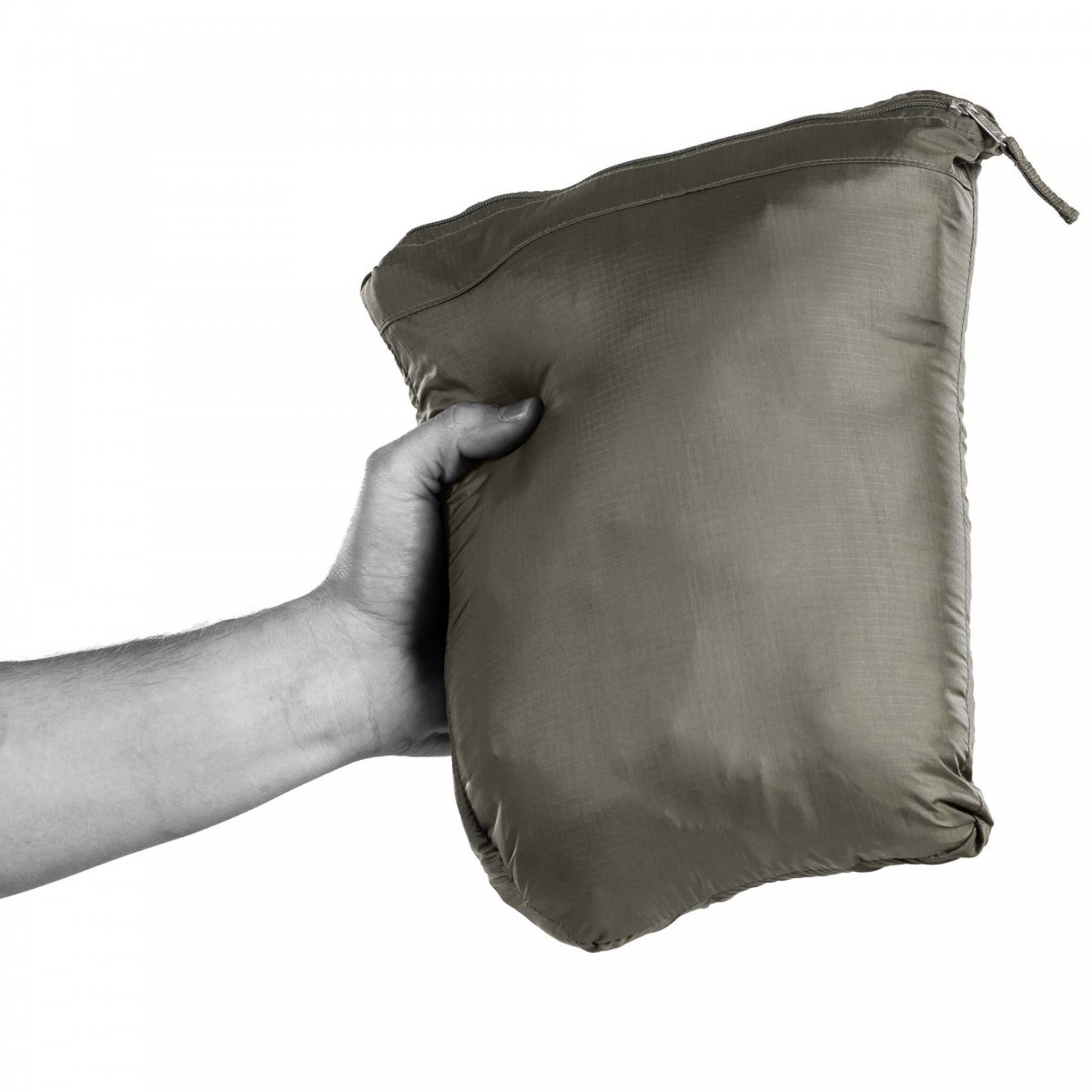 När jackan är komprimerad och stuvad i sin innerficka tar den upp en yta på endast 30 cm x 15 cm x 5 cm (2,25 liter).