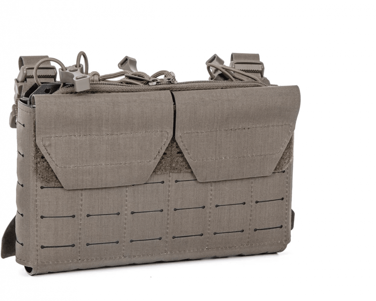Frontpanelen kommer med 3 stycken magasinfickor för M4/AK, 2 stycken fickor för pistolmagasin, 1 styck adminficka med dragkedja samt 2 mindre fickor med flärp.