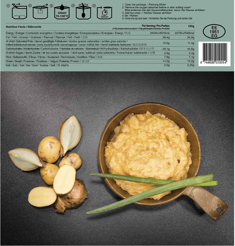 Varje måltid är tillagad för att ha en högt energiinnehåll med låg vikt samt med 100% naturliga ingridienser, helt utan tillsatser och smakförstärkare.