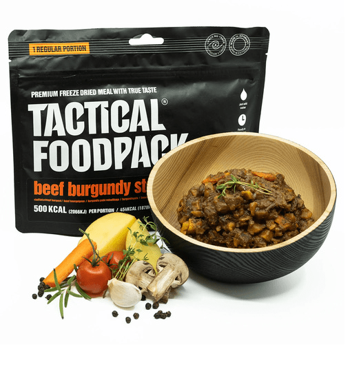 Upplev smaken av det franska köket – mitt ute i naturen – med vår Biff Bourguignon. Denna lyxiga friluftsmåltid kombinerar mört nötkött, potatis, morötter och svamp i en fyllig rödvinsås som ger djup och karaktär. Det smakar som något direkt från en fransk bistro, men du behöver varken kök eller bordduk.