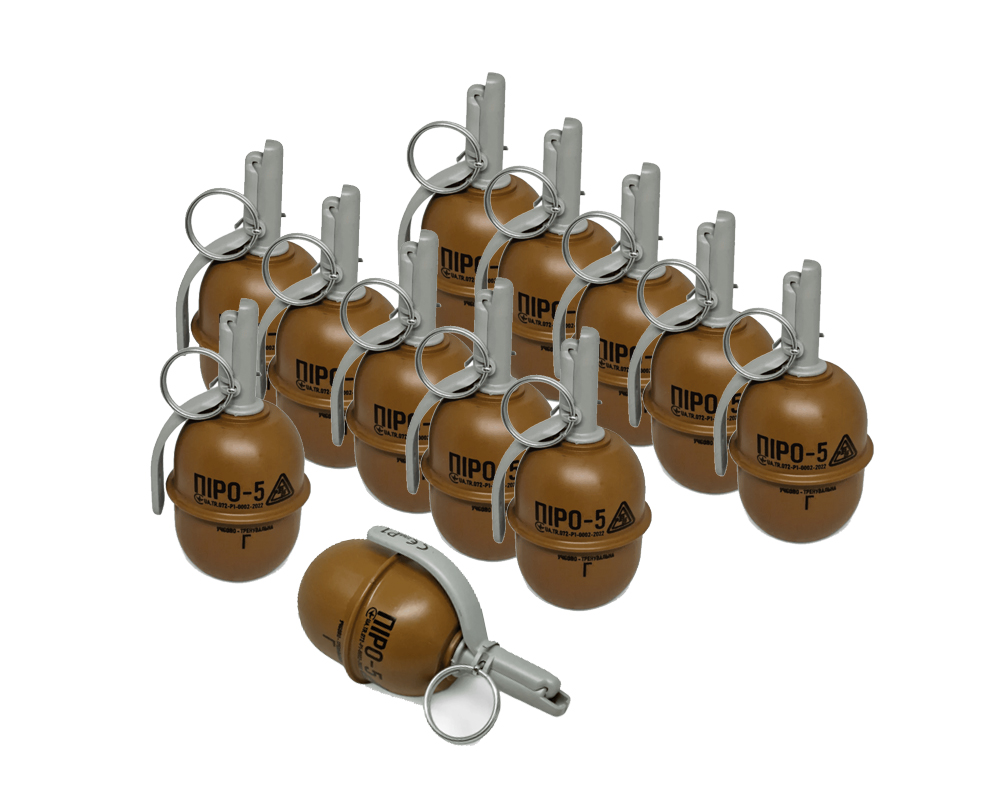 Piro-5G avger en knall på ca 120 dB. Granaten innehåller airsoftkulor som flyger iväg för att simulera fragment.
