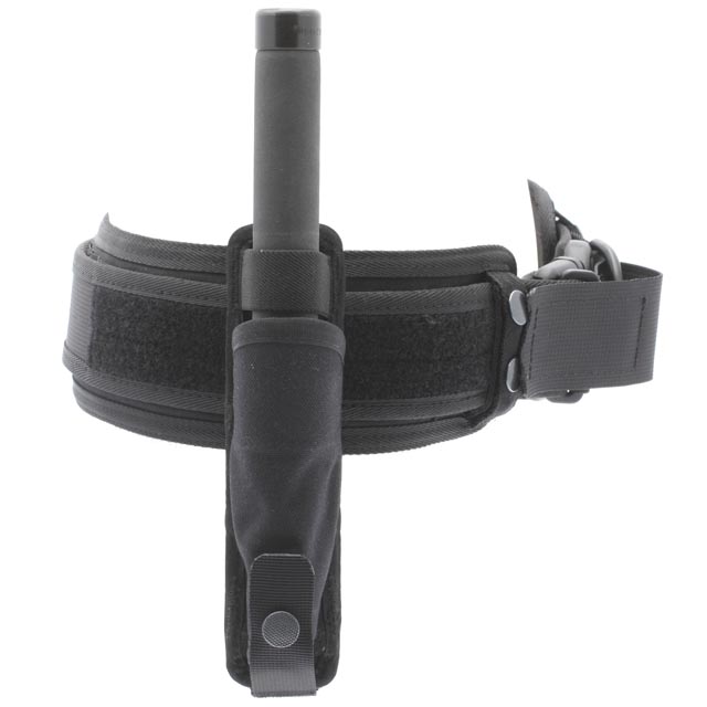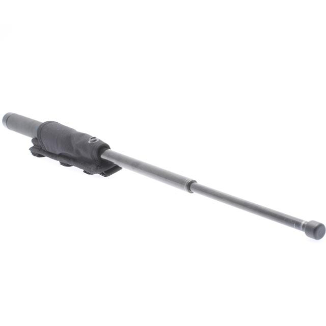 Fickan har en elastisk ögla i toppen för att hålla batongen på plats.
