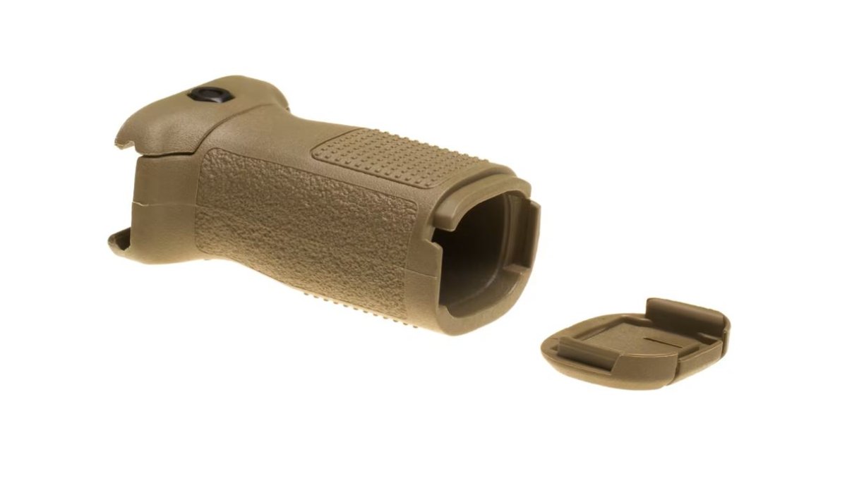 Detta monteras enkelt på vanliga R.I.S system och har även utrymme för verktyg eller liknande innuti greppet.