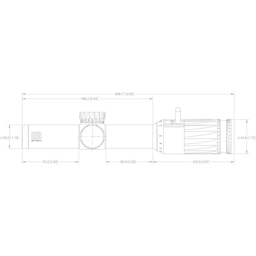 The SR1 incorporates the iconic EOTECH illuminated speed ring along with a hashmarked inner crosshair reticle that uses MRAD sub-tension lines for ranging, holdover and wind compensation. The first focal plane design allows for lightning fast target acquisition using the speed ring at the lower power settings. When the magnification setting is dialed up, the speed ring disappears from view and the inner crosshair comes in to view for more precision on longer range shots.